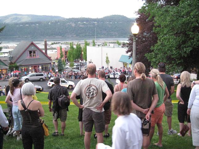 Hood Riverの町が、突然ものものしい状態に。