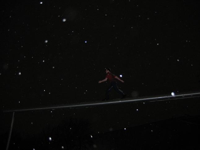 綱渡りの男性。